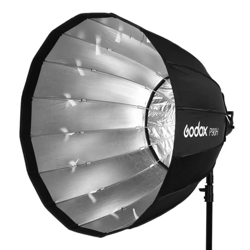 The easy to set up Godox P90H softbox has a durable and reliable design. High quality materials such as strong glass fibre ribs have been used. The P90H softbox weighs 2.043 kilograms.
