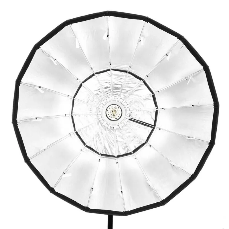The Godox P90H Deep Parabolic softbox has a diameter of 90 centimetres and a depth of 69.4 centimetres. With this softbox you create an even and very soft light with a smooth transition to shadows. Ideal for portraits! The softbox comes with a speedring for Bowens flash units.
