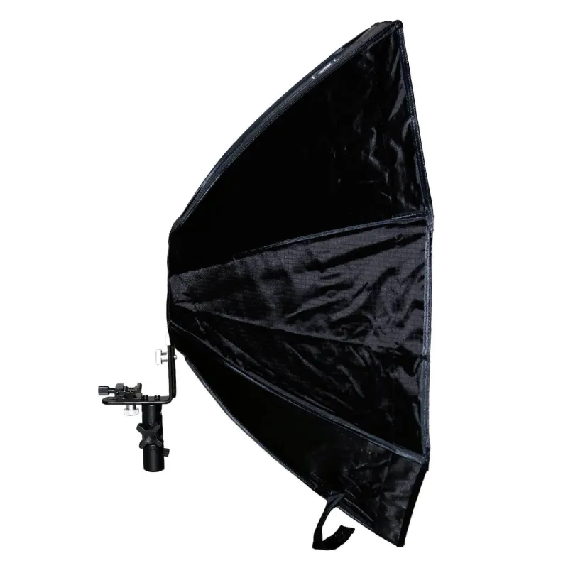 The softbox is quick to setup thanks to the folding system. The inside of the Speedlite softbox has a highly reflective silver-coloured coating for a maximum reflection of the light. The kit is easy to transport with the convenient carry bag and shoulder strap.