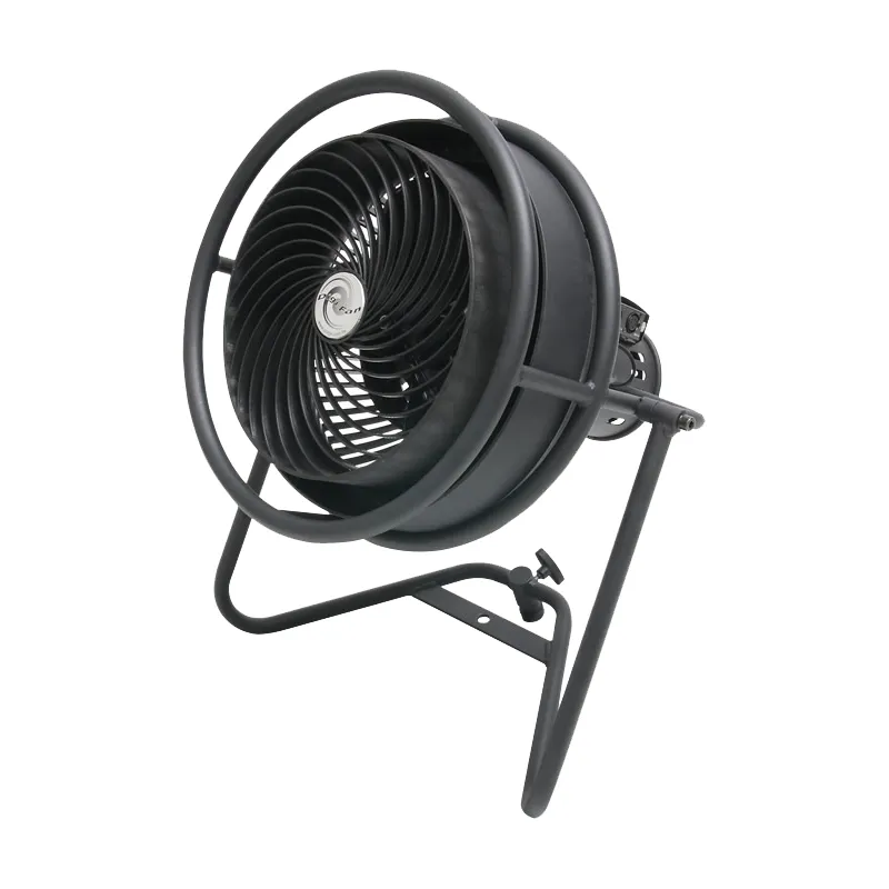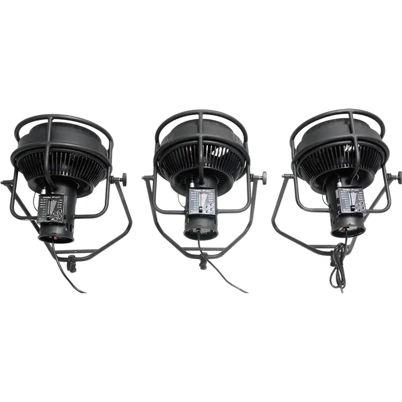 The Kupo DF-500 Digi Fan is a powerful and versatile wind machine designed for studios, theaters, theme parks, touring, photography, and more. It is suitable for a wide range of applications including blowing haze, smoke, bubbles, confetti, or snow, cooling performers, dimmer racks, or amplifiers, and even drying paint in the studio. The DF-500 can be controlled through a standard DMX signal or master/slave operation via a data link. It features a versatile yoke for overhead rigging, floor sitting, or stand mounting. The housing is constructed from a molded lightweight plastic venting device with rugged tubular steel for transport and protection. The fan includes an 11 one-piece blade and a spiral front grill for creating a narrow focus wind stream. It is compact, lightweight, and powerful.