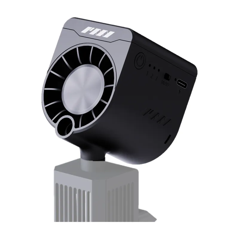 The kit includes a PMI Haze 3rd generation fan with Haze Blending technology for finer haze than its predecessor. It features a 2.4 GHz connection and a nozzle attachment for one-handed use, capable of hazing a 90 square meter studio in just two minutes.