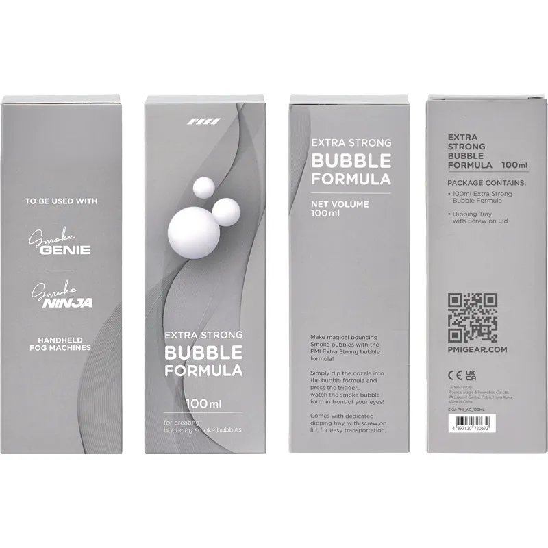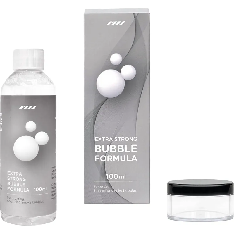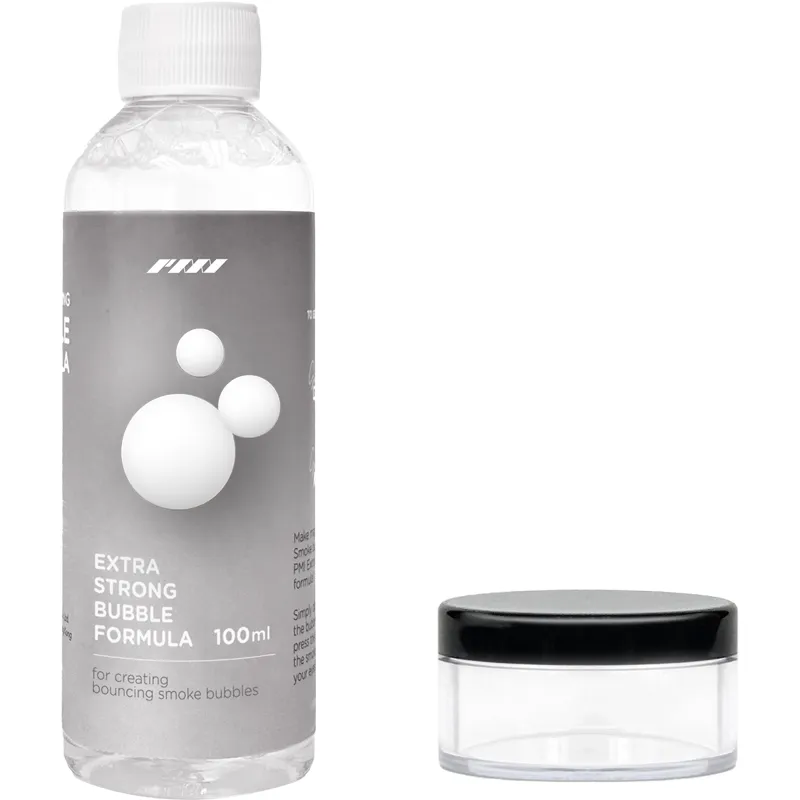 Unleash mesmerizing smoke bubble effects with the PMI Extra-Strong Bubble Solution, the perfect refill for your Bubble Nozzle Kit. This 100mL bottle features a specially formulated solution for creating stunning smoke-filled bubbles designed to captivate audiences and elevate any performance.