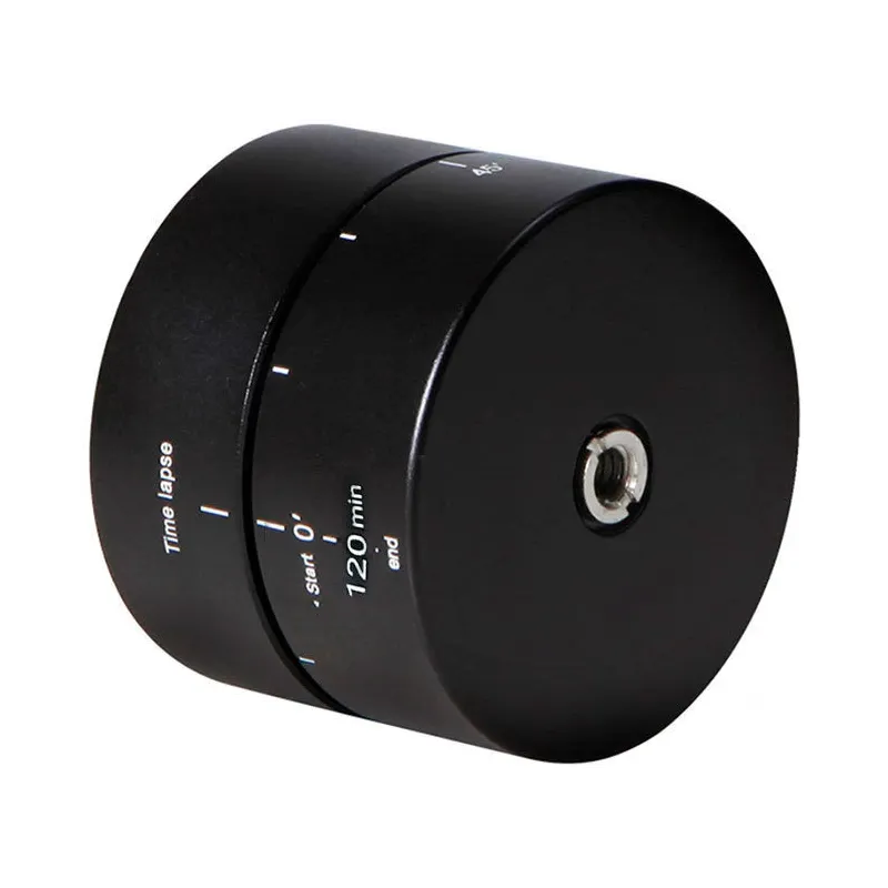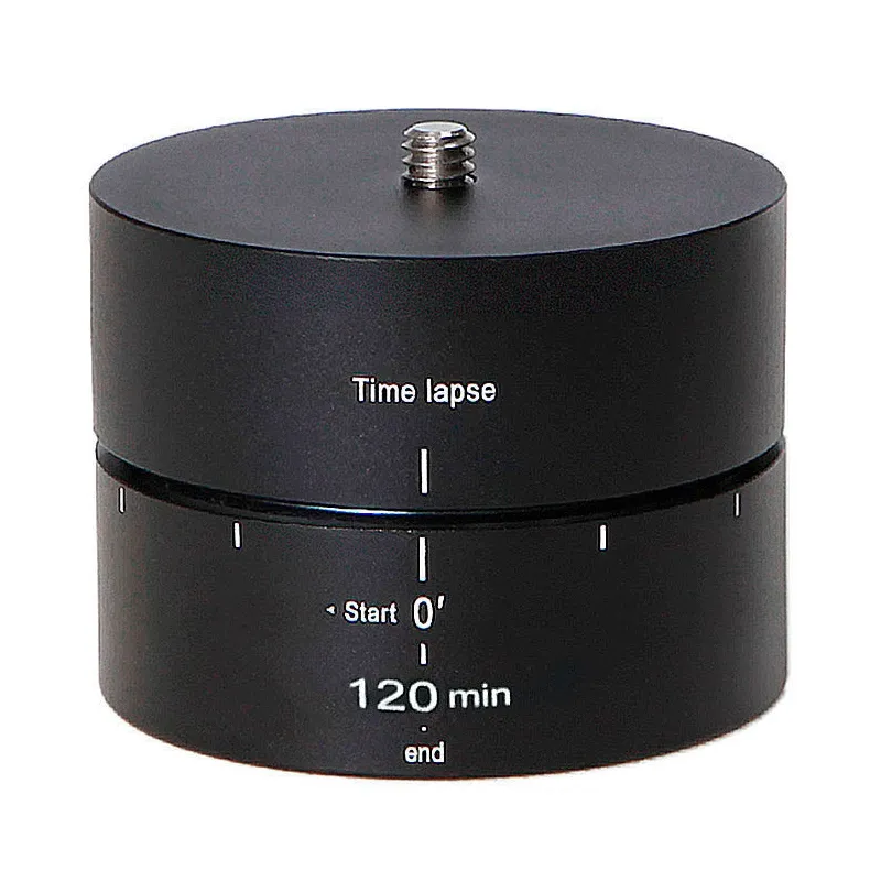 The Caruba Automated 360-Head gives your timelapse videos a panoramic effect. Your camera rotates 360 degrees in a 120 minute time frame, capturing images in all directions.