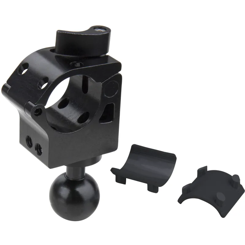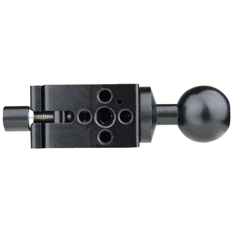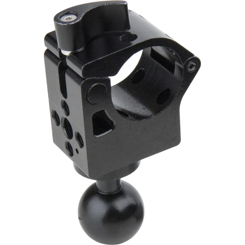 This lightweight coupler features a removable rubber pad to fit Gimbal frames and handlebars. It comes with a ball head on one end, designed for mounting video accessories with a Super knuckle. On the other end, it has 3/8-16 Arri anti-rotation holes, providing an additional mounting option.