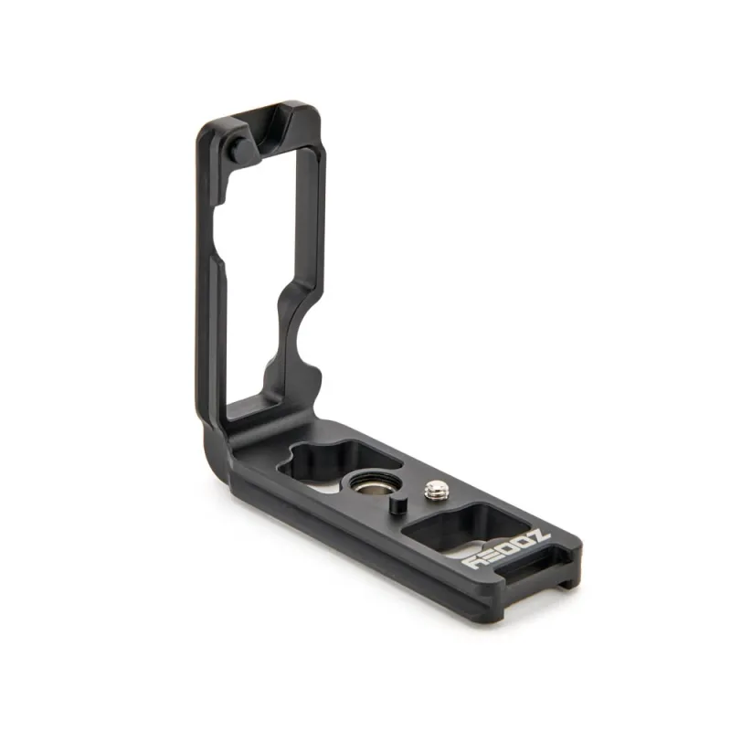 The ZOOEY QD is a standard 38 mm Arca Swiss compatible L bracket made of a beautifully anodized aerospace grade magnesium alloy. It provides users with full access to the cameras battery door and side ports when in use. Vertical cutouts provide access to the rear screen, strap and focus mode button. ZOOEYs base also features a strap attachment point.