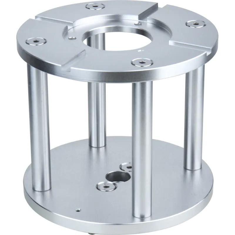 This is a 6 high Mitchell camera riser, which is assembled with a Mitchell female on top, a Mitchell male on the bottom, and three solid aluminum rods measuring 20mm in diameter.