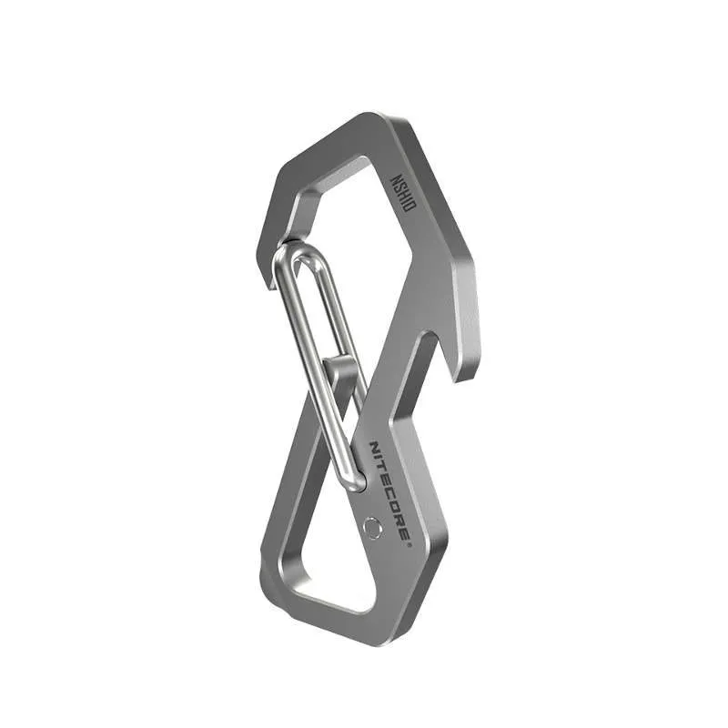The NITECORE NSH10 titanium snap hook is a lightweight and stylish must-have edc multi-tool carabiner. The precision machining yields a slick design with stylish angular lines and a smooth fine sandblasted finish. The textured finish allows for a nice grip texture, with an easily manipulated 45 degree spring-loaded latch.
