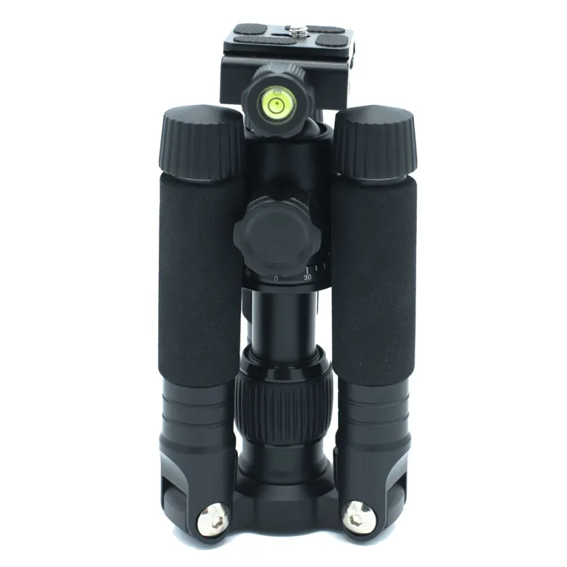 The Caruba heavy duty table tripod can be stored very compactly because the tripod legs fold back around the ball head after use. This way, this ultra compact tripod always finds a place in your camera bag or luggage.