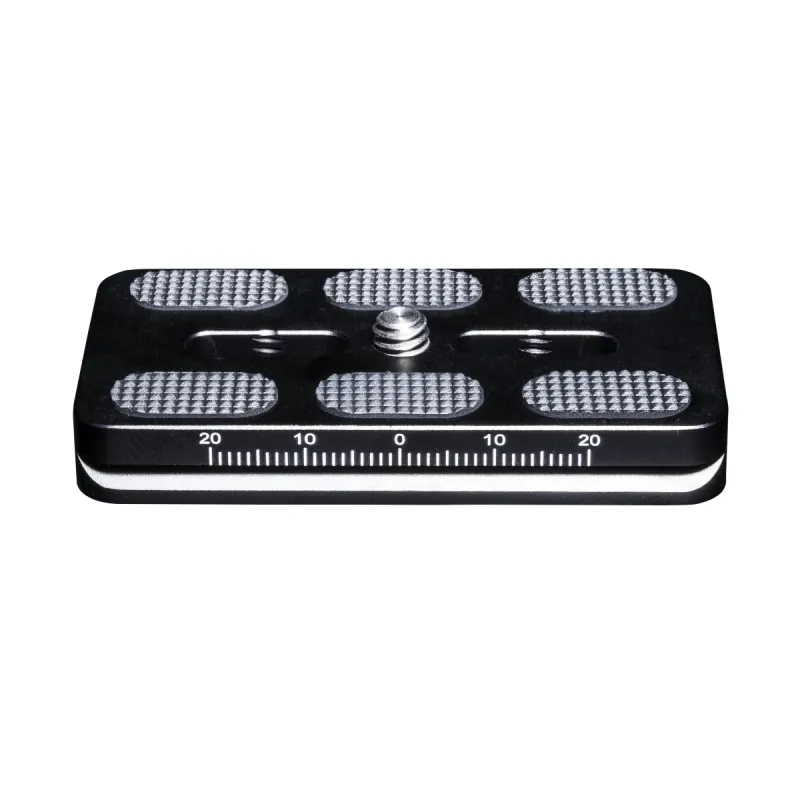 This quick-release plate is suitable for all tripod heads and ball heads, sliders or panheads with an Arca Swiss-compatible quick-release system. The quick-release plate comprises a light and very sturdy aluminium alloy and is milled using CNC technology and and then black-anodised. This ensures perfect precision and a scratch-free surface.