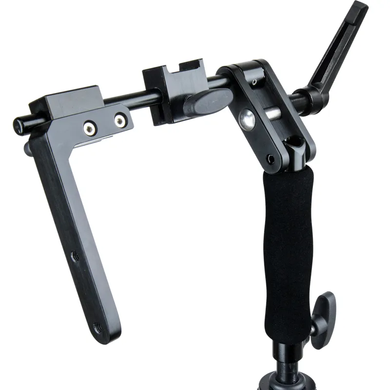 The Kupo Tilta Nucleus-M with handgrip allows you to place your monitor as close to the index mark of the focus knob as possible. It features an ergonomic design handgrip that efficiently transfers the weight from the wrist to the biceps.