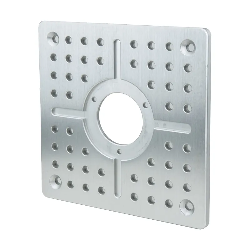 Constructed from CNC machined aluminum, the cheese plate comes with plenty of industry standard 3/8 mounting holes, spaced every 1 inch. It features a Mitchell center that allows for mounting cameras with Mitchell base tripod heads.
