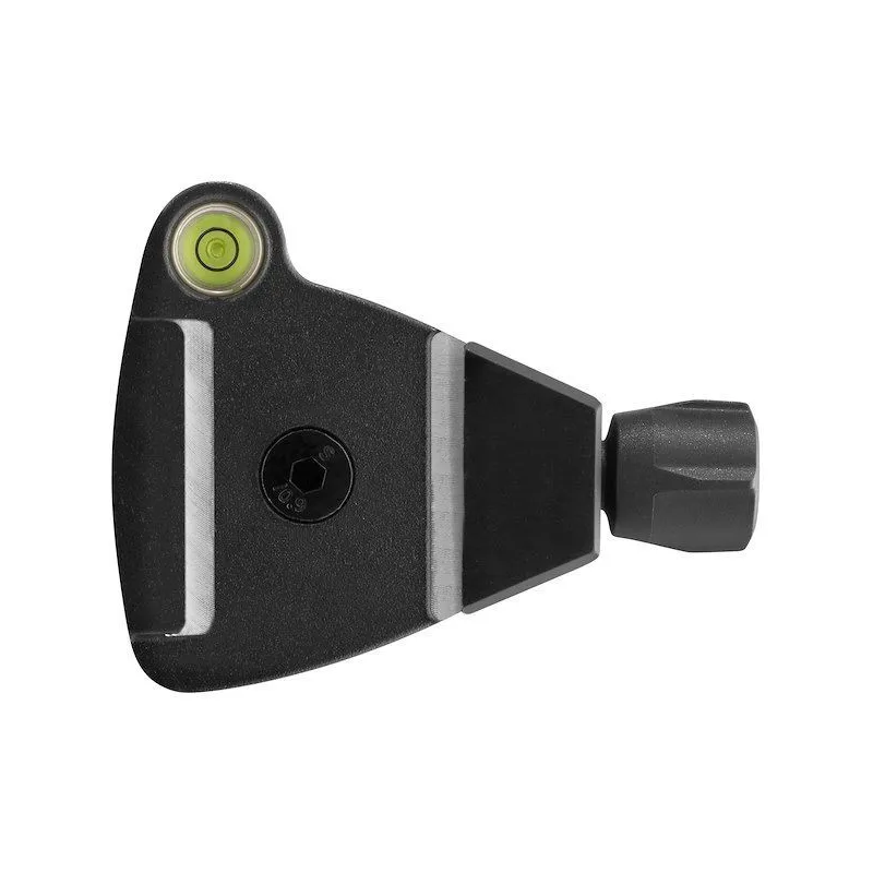 Made of lightweight aluminium, the adaptor has a two-axis spirit level to facilitate precise framing and help capture level images in-camera, ensuring the camera's full frame is used and reducing post-production time. The adaptor features an ergonomic side knob that locks the plate and keeps it safely in place while you shoot. The knob is secured to the plate-holder thanks to a mechanism that stops it at its maximum opening.