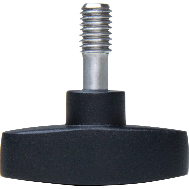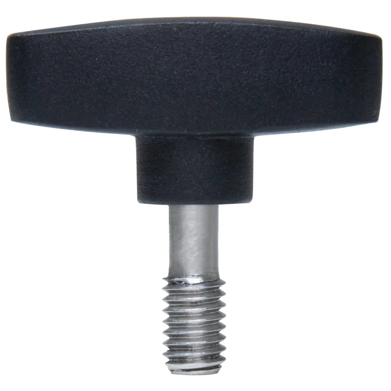 Machined knob featuring a 3/8-16 stainless steel male thread with a shoulder for use with dovetails.