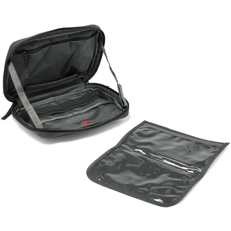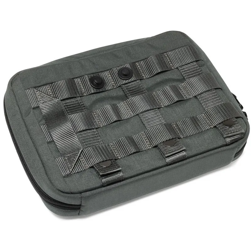 This pouch allows both the shooter and the spotter to carry all the fundamental accessories on the field, such as an anemometer, map, tools, notebook, pens, carabiners, gloves, etc. The external P.A.L.S. system allows for extra modularity. Elastic cords provide the ability to fasten light accessories. An internal transparent pocket provides space for a map or a notebook. Internal pockets are suitable for accessories such as an anemometer. Built-in Fidlock attachment points allow for the quick and precise attachment of the ALPHA S.H.O.T. Leg Organizer. The back P.A.L.S. system makes it easy to attach the pouch anywhere.