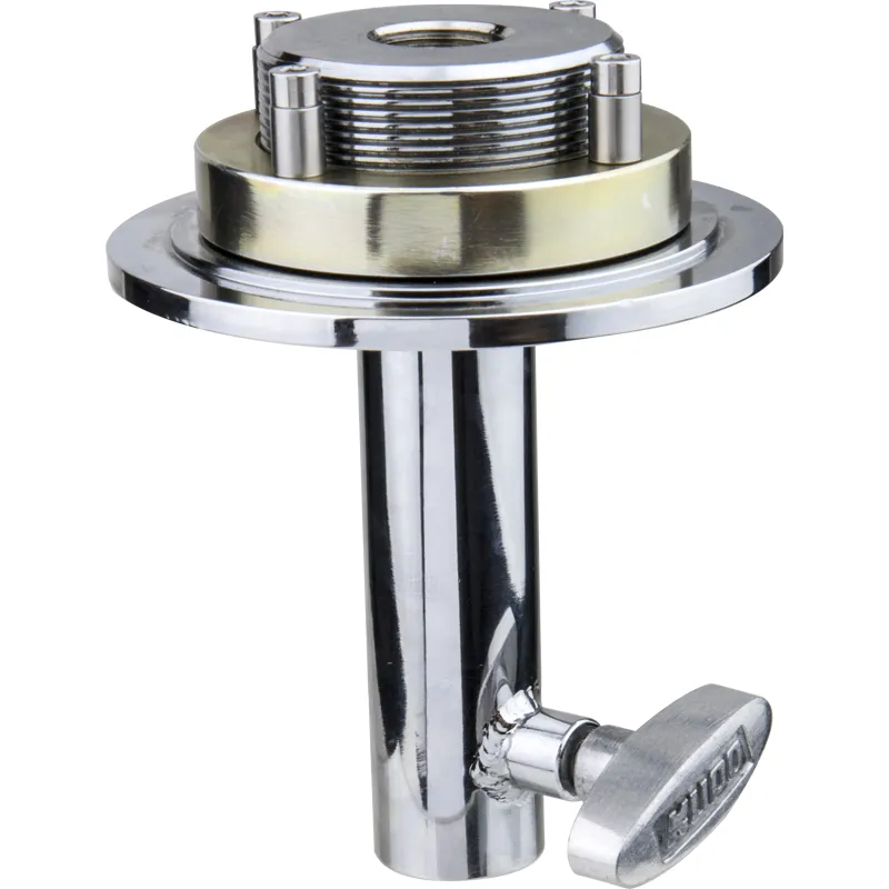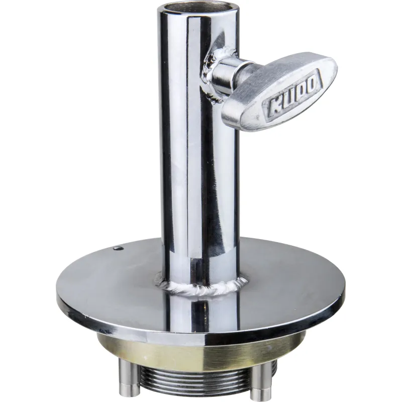 This adapter is made of chrome-plated steel and is mounted on a round plate. It allows for assembly with a Mitchell thread collar and features a 1-1/8 (28mm) junior receiver.
