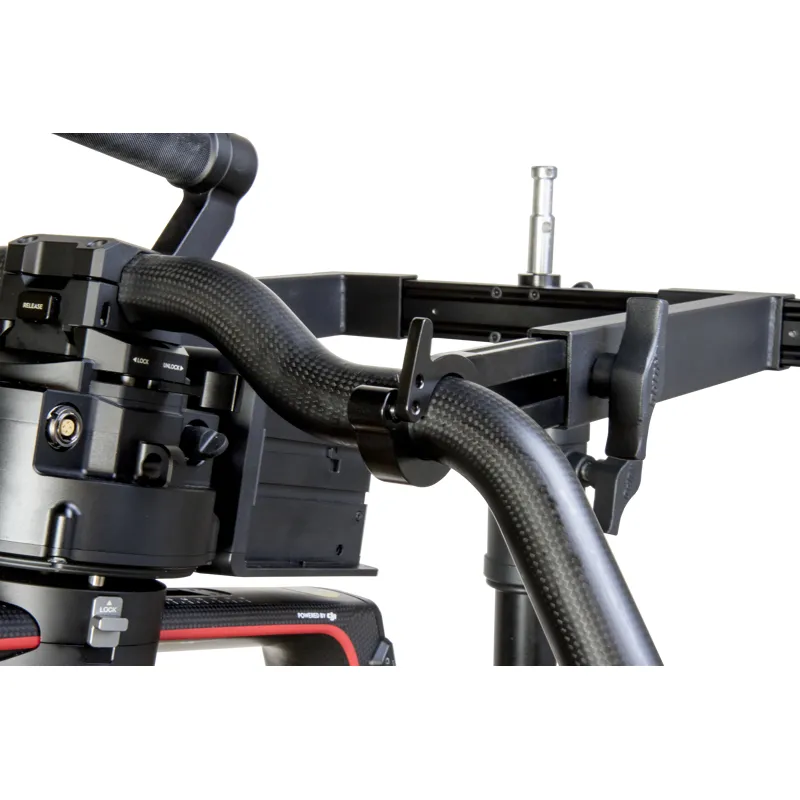 The lockable hooks on the ends of the arms can hold any gimbal ring or handlebar with a diameter of 25-30mm, keeping the gimbal securely in place on the bracket and preventing it from being dislodged. A tool holder is attached to one side of the arm, providing easy access to tools and storage.