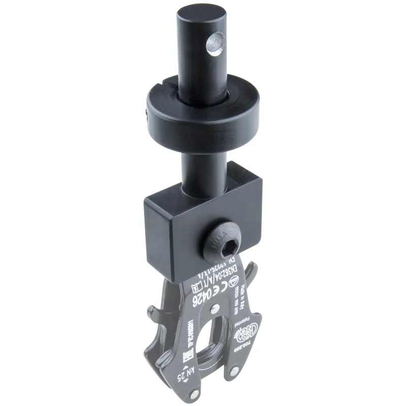 Constructed from machined aluminum, this black anodized adapter is designed for configuration with a link bracket and KS-157 Kongfrog carabiner (not supplied). It offers Steadicam operators a flexible tool for switching to a hand held camera.