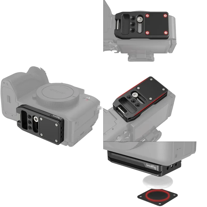 Using durable M2.5 screws to prevent AirTag from being removed quickly, so as to maximize the possibility of finding your camera. The quick-release plate has a built-in Arca-Swiss plate, which can be quickly connected to tripods and other accessories for shooting; the bottom has a built-in 1/4"-20 threaded hole, which can be attached to the quick-release plate to achieve different setups in different scenes; the bottom plate leaves a strap hole to compatible with the wrist strap. Also, the AirTag mounting compartment has built-in EVA pads to protect the AirTag and prevent noise from moving the device.