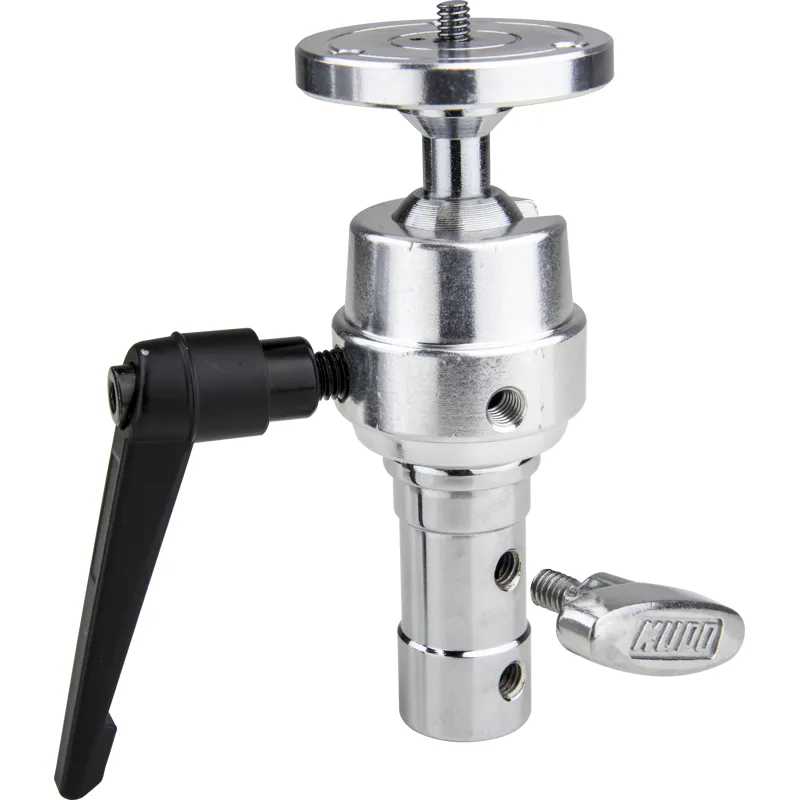 This allows positioning of the camera in any direction on the stand or any equipment that comes with a 5/8 (16mm) baby stud or a 1 1/8 (28mm) junior receiver. It features three set screws on the plate to securely lock the camera in place.
