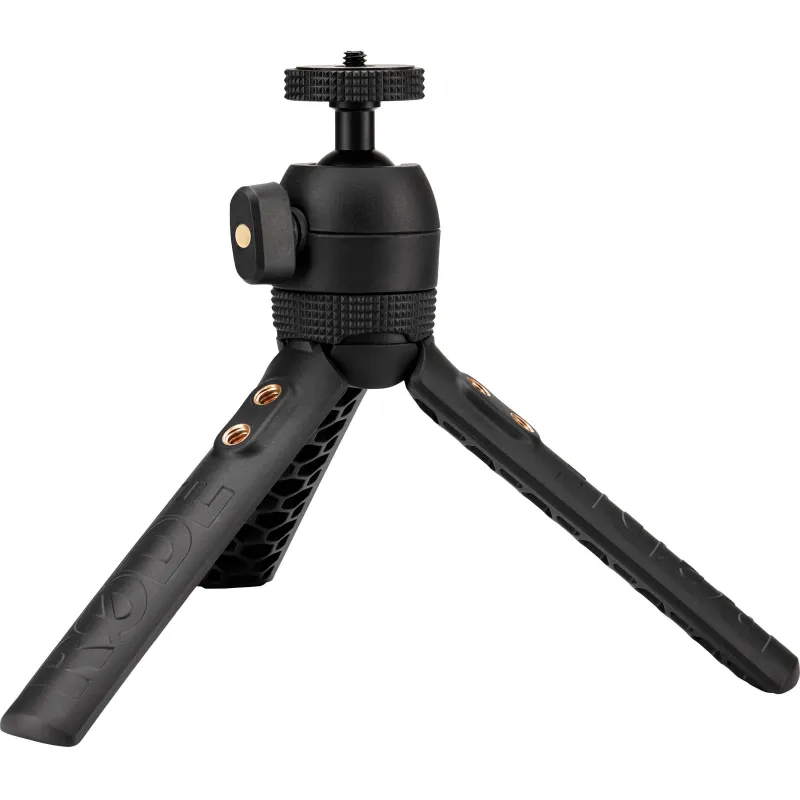 The Tripod 2 is a high-quality tripod designed for either tabletop or handheld use. It features a 1/4-inch thread for mounting cameras and other accessories, and comes with a 1/4-inch to 3/8-inch thread adaptor for use with microphones. Two adjustable height settings allow for optimal positioning and stability on a tabletop, and the legs fold together to form an ergonomic grip for handheld vlogging. It also features 1/4-inch thread inserts on the legs for easily mounting additional accessories.