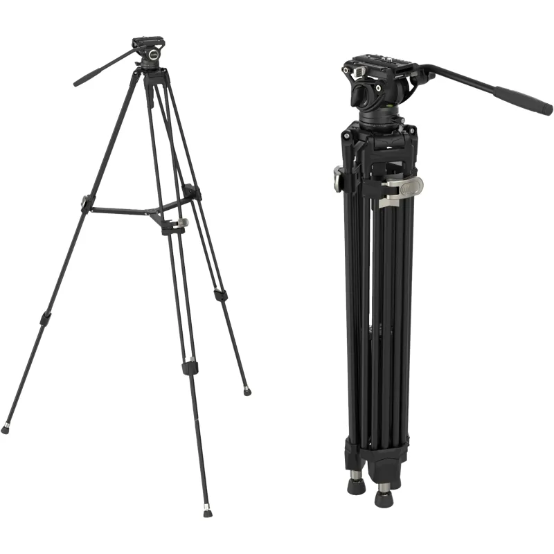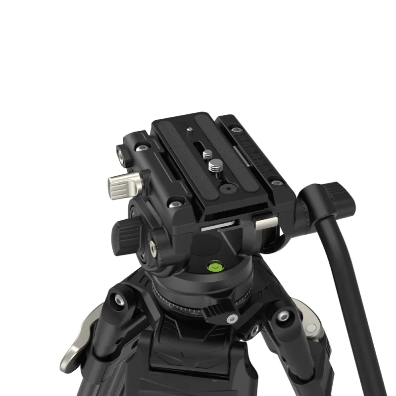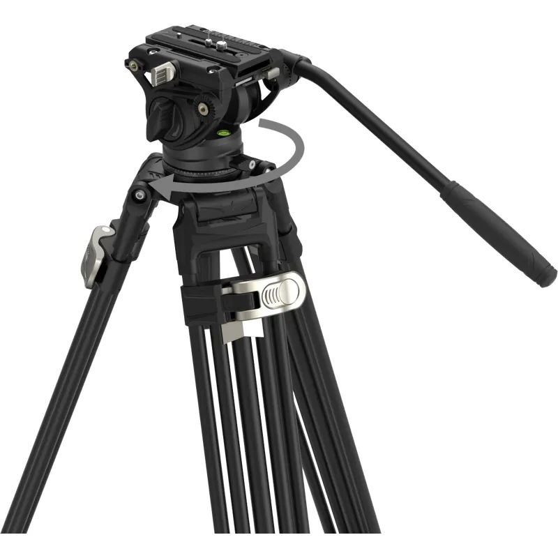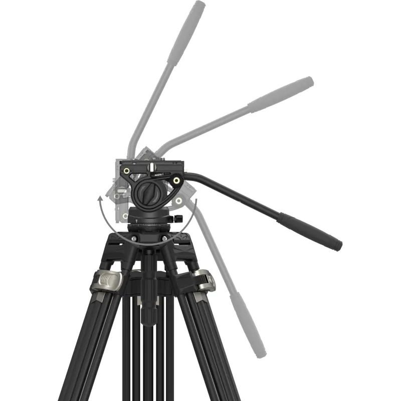 The fluid head allows you to use the included Manfrotto-style quick release plate or the original DJI RS 2, RS 3, or RS 3 Pro quick release plate with the flip of a simple switch. The 75mm half ball head can pan 360° and tilt +90/-65°, and it can support up to 6.6 lb with its preset counterbalance system with precise control. The snap-in quick release plate features 1/4"-20 and 3/8"-16 camera screws to accommodate all camera types. Other features include a bubble level, 1/4"-20 accessory threads, and a fixed pan bar. It also features adjustable rubber feet.