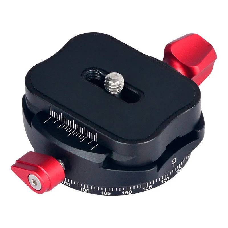 The Caruba Quick Release System - Panorama 3 (Red) is provided with a smooth 360 degree rotation panning mechanism. The base rotates quickly and smoothly and can be locked with the small knob on the side. The Panorama 3 has an Arca-Swiss compatible quick release system for quick camera removal. The large rotary knob on the side locks the camera firmly in place.