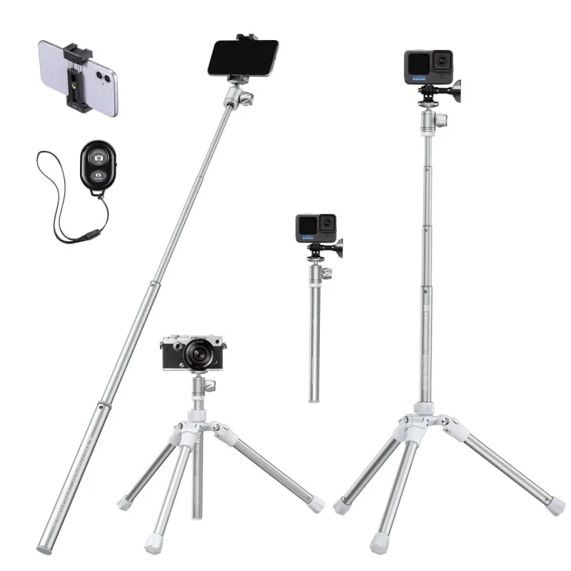 Flexible Tripod. You can switch between a tripod, desktop stand, and selfie stick. Which is very convenient and meets the needs of many different photography functional scenarios such as traveling, vlog shooting, live streaming, etc.