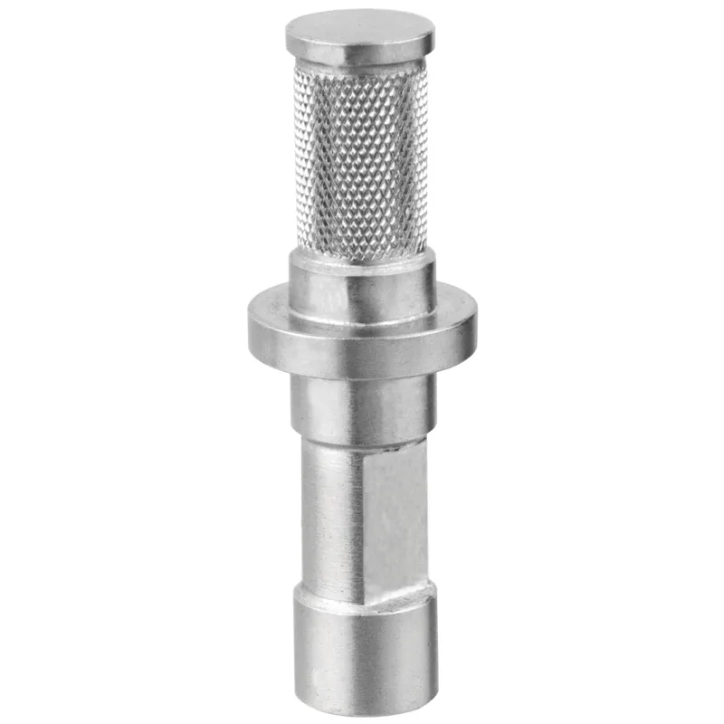 Made from solid steel, this double stud features a knurled neck on one side for maximum friction and a milled flat on the other to prevent rotation while mounted inside a 5/8 baby receiver. An additional 3/8-16 female thread is tapped for connecting with a variety of accessories for video and lighting.