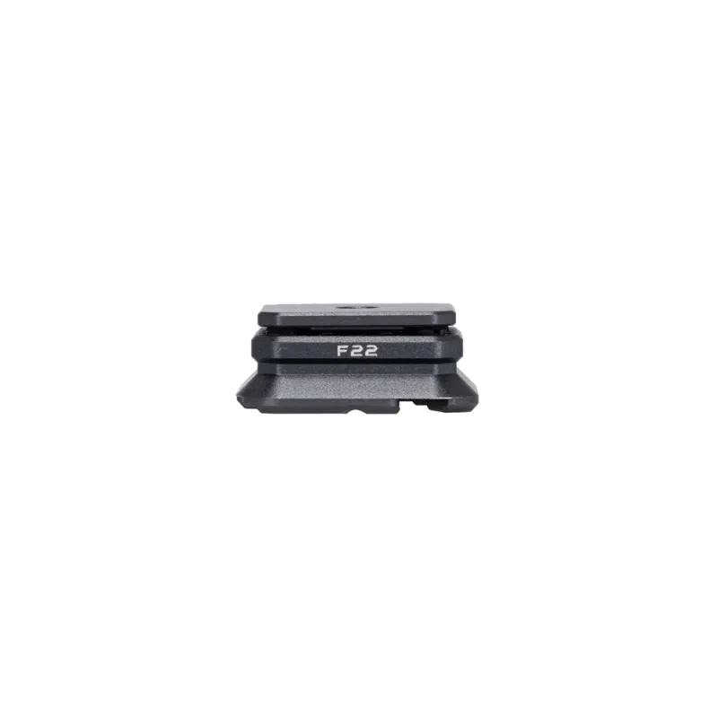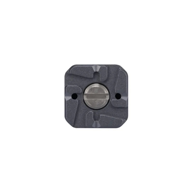 The Falcam F22 Cold Shoe Adapter Plate has a quick release plate at the bottom that can be used with accessories from Falcams F22 Quick Release series. At the top, a cold shoe is present for integration with cold shoe mounting slots.