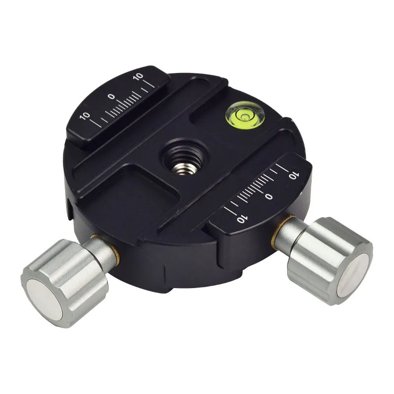 The Caruba Quick Release - DDM-60 has two clamps that can be opened and closed with the sturdy dials. This enables you to secure the DDM-60 to a tripod plate and attach a quick release plate to the top. On both sides, the clamp is Arca-Swiss compatible and equipped with a spirit level. When mounted on a long quick-release plate, you change the position of your camera on the tripod in no time.