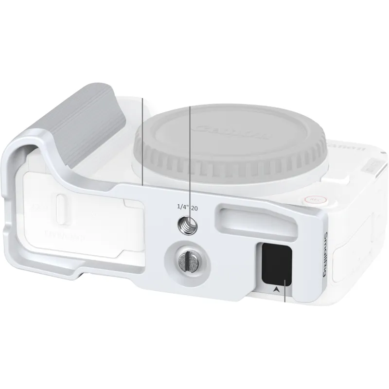 This mounting plate is specifically designed for the Canon EOS R50 V White, ensuring a perfect fit and optimal performance.