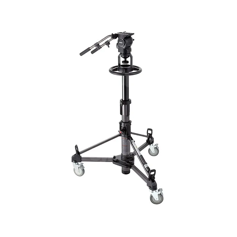 The Libec RSP-750PD(B) Pedestal System, designed for broadcasting, consists of the RHP75 Fluid Head, the PH-8B Pan Head, and a P110(B) pneumatic pedestal with DL-8RB Broadcast Dolly for outside use. Easy to set up and compact in size, this pedestal system has a maximum load capacity of 37.5 lb. It accommodates many studio cameras.
