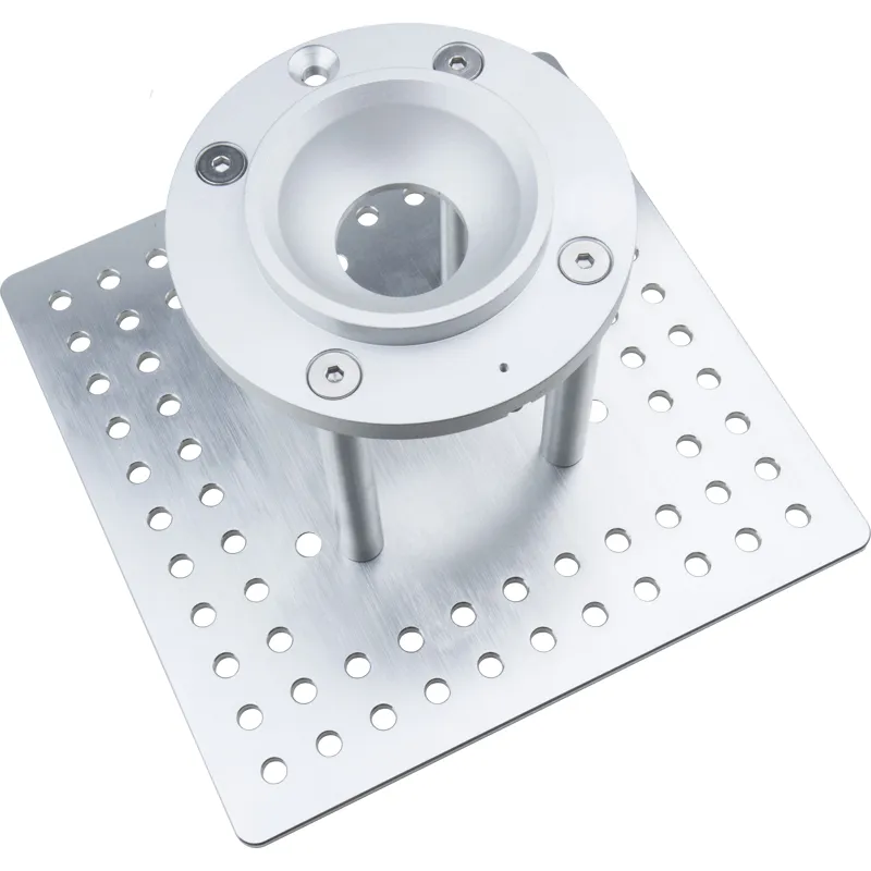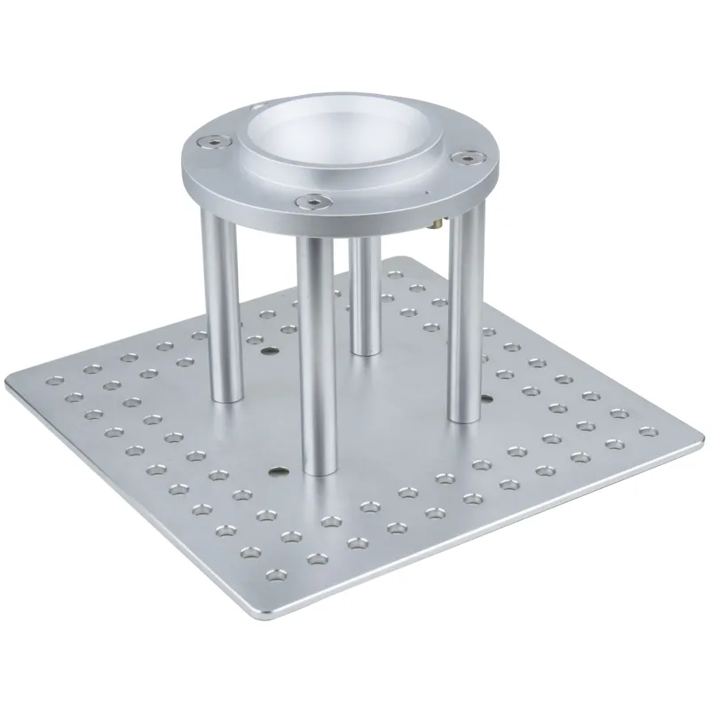 Kupo Hi-Hat works with any fluid head that has a 100mm ball base. It features a 12 x 12 x 1/4 aluminum cheese plate on the bottom and four 6 high solid aluminum rods measuring 20mm in diameter. It is primarily designed to be used in place of traditional wooden hi-hats.