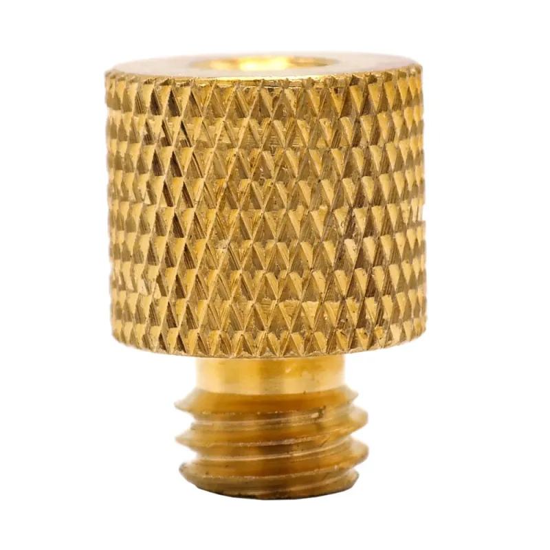 The Caruba Adapter Screw 3/8"M - 1/4"F - Brass is a spare or extra screw with a 1/4" female and a 3/8" male thread for use with cameras, tripods and flash brackets. The large round head with serrations makes it easy to tighten the screw. The screw is made of brass.