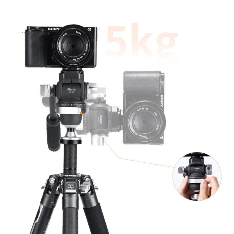 The Ulanzi EH09 Arca Ballhead (suitable for TT09) is a versatile ballhead designed specifically for the TT09 travel tripod. The ballhead supports an Arca Swiss quick release system, which is convenient for quick and easy mounting of camera equipment. Thanks to its 360-degree panoramic rotation, it offers flexibility for both horizontal and vertical shooting, making it ideal for photographers who frequently change camera angles.
