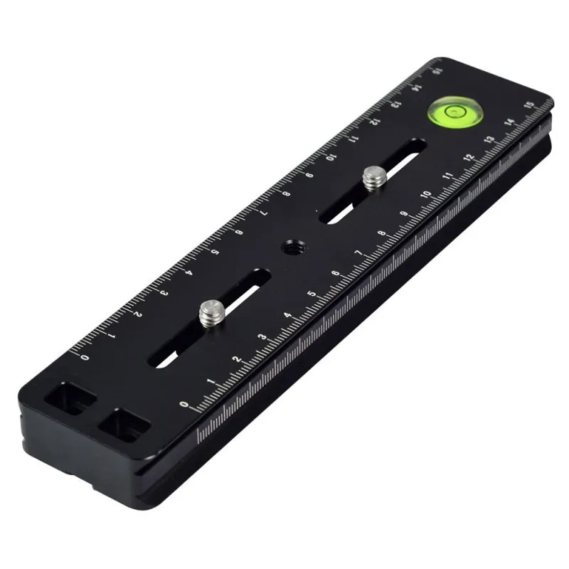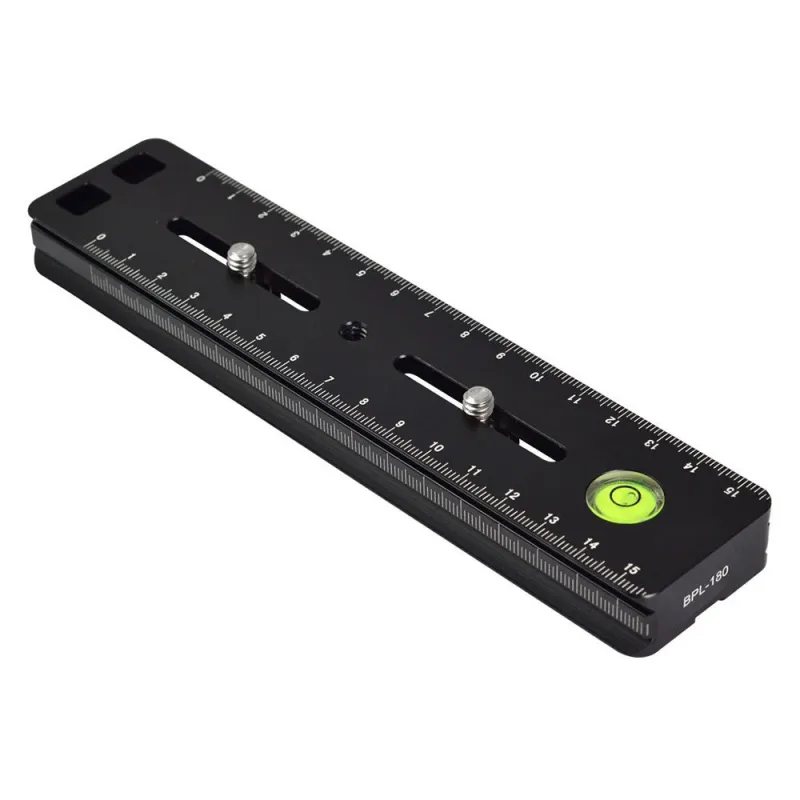 The Caruba Tripod Plate Universal WP180 is a universal quick release plate with a length of 16 centimetres suitable for SLR cameras. The plate has a 1/4" screw with which it is attached under the camera. The WP180 has a scale on the top and side. With the handy spirit level on the top, you can adjust the equipment precisely.
