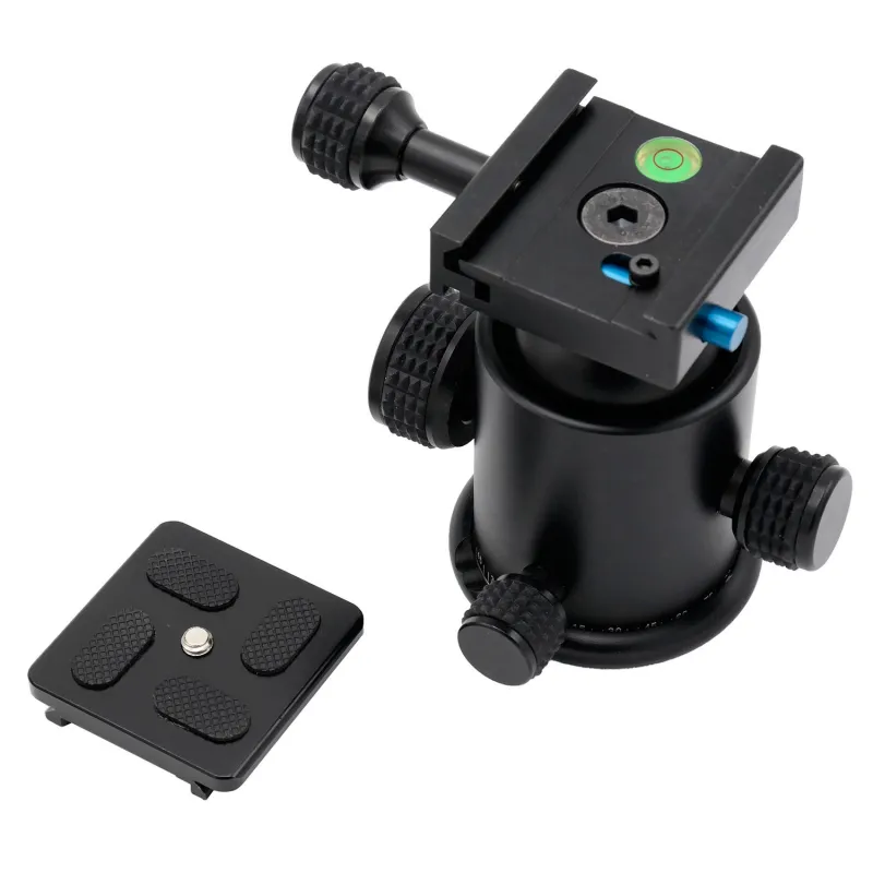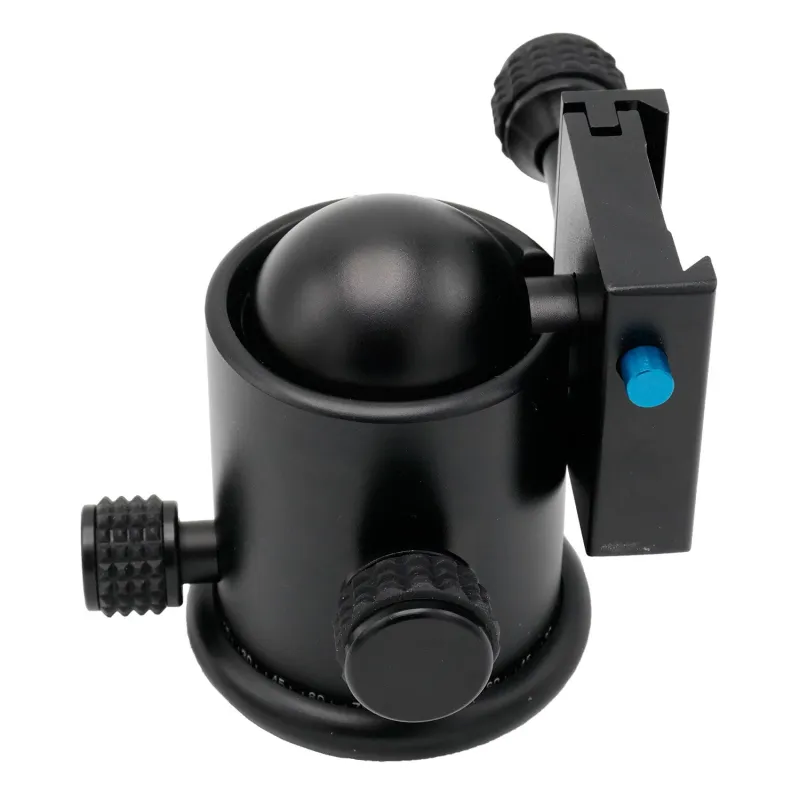 The ball head is made of precision finished and stylish black anodised aluminium. The Arca-Swiss compatible quick release system allows for quick insertion and removal of the camera. A security pal in the quick release mechanism prevents your camera from accidentally sliding off the head.