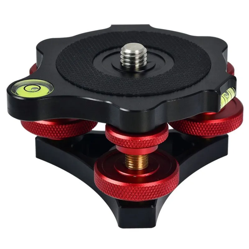 This compact base is smooth, quick to use and can be set very precisely. The angle is tiltable up to ten degrees. The Caruba Leveling Base has a 3/8" threaded connection and an adapter is included to attach the base to 1/4" thread as well.