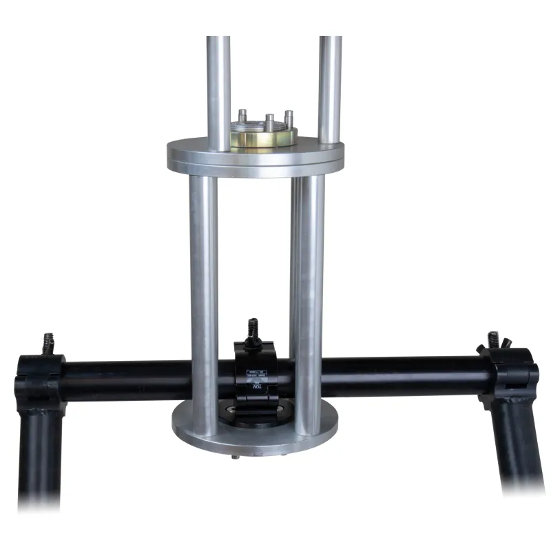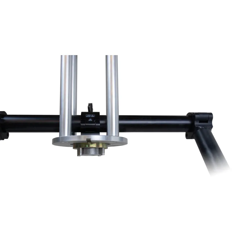 The black anodized aluminum round plate, measuring 100mm in diameter, is designed for firmly mounting a 2 coupler (KCP-831THA) with two 3/8 countersunk flat head screws on the Mitchell collar and castle nut. It allows for effortless connection of a 2 pipe with this coupler to a Mitchell base.
