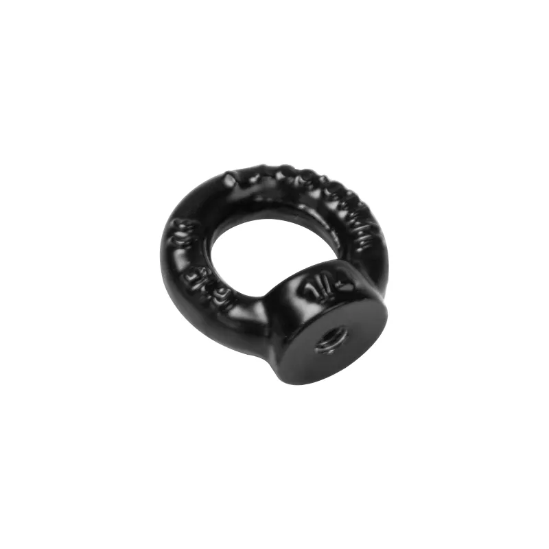 Black coated steel eye nut with 1/4-20 female thread is ideal for attaching to the object with a 1/4-20 bolt (not supplied) for hooks or cables.