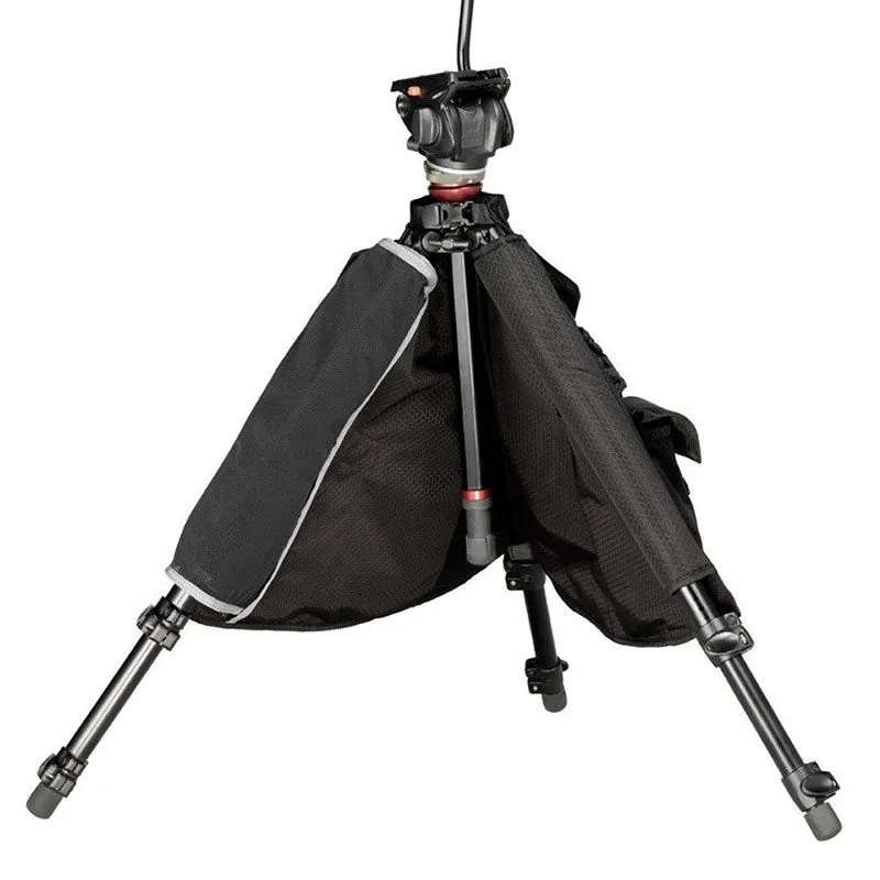 The tripod jacket is provided with two carabiner hooks, where you can hang various things. Mount the weatherproof jacket easily on different tripods. Prevent the tripod from opening in transport thanks to the closable mesh.
