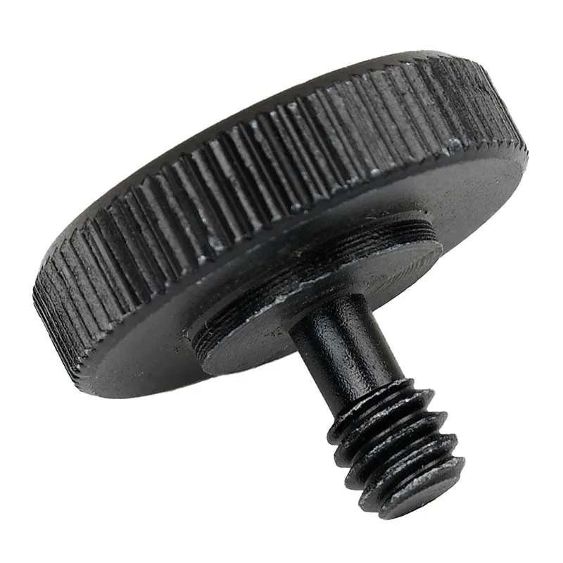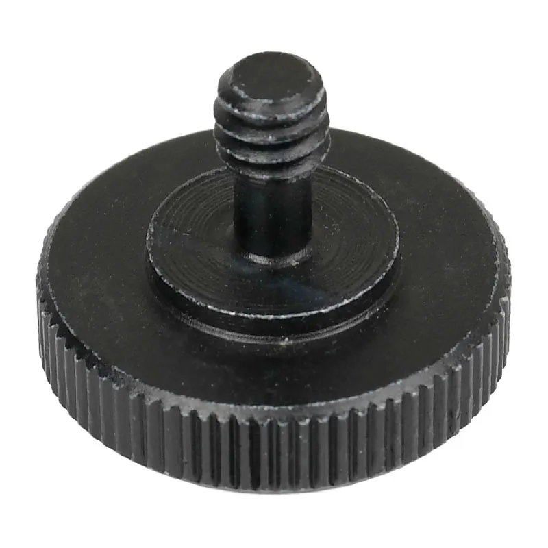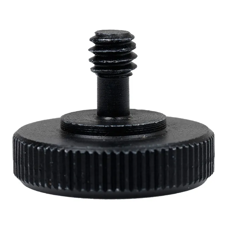 The Caruba Adapter Screw 1/4"M - 1/4"F with Metal Grip is a spare or extra screw with a male and female 1/4" thread for use with cameras, tripods and flash brackets. The large round head with serrations makes it easy to tighten the screw. The screw is made of black anodised aluminium.