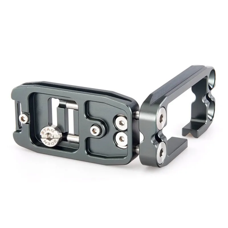 The Ellie System is a world first in modular camera brackets. Combining a reversible, rotatable vertical aspect, with one of four precision base units, the Ellie is the most functional, most compatible L Bracket in the world, and the ONLY L Bracket system with Peak Design & Arca Swiss compatibility. With two axis adjustments, Ellie fits more cameras than any other universal L Bracket, with an unprecedented level of functionality.