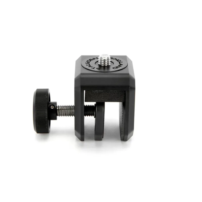 The Window Mount Clamp features a standard 3/8 16 screw mount at the top for attaching various tripod heads. The clamp attaches to the window with an easy-to-use screw mechanism, and all parts of the clamp that touch the window are covered with soft-touch rubber to prevent stains or scratches.