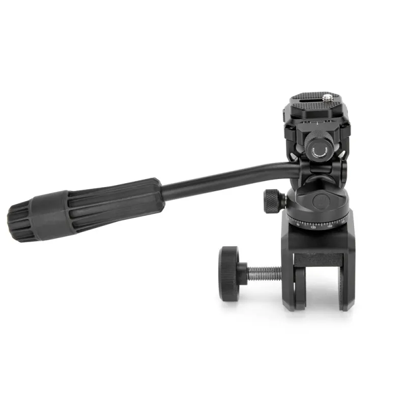 The Window Mount Trinity Kit has a standard 3/8 16 screw mount at the top for attaching various tripod heads. The clamp attaches to the window with an easy-to-use screw mechanism, and all parts of the clamp that touch the window are covered in soft-touch rubber to prevent stains or scratches.