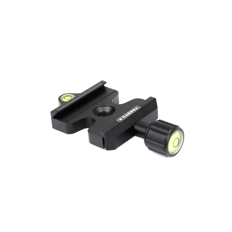 The Caruba Quick Release - 50mm is a 50mm clamp with a scew-turn button suitable for mounting on any ball head that has a 3/8" thread. A traditional screw-release clamp has a higher clamping force than lever-release clamps. This clamp is equipped with a recessed centre socket on the top and a 3/8"-16 thread. The Quick Clamp also features a vertical and horizontal spirit level.