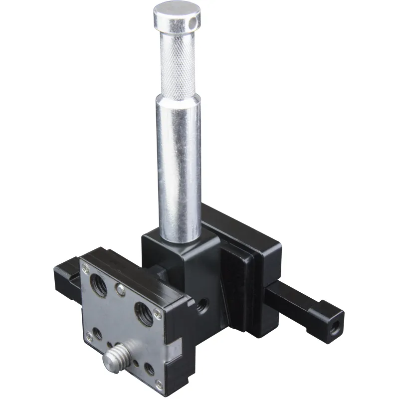 The Dual V-Lock Adapter is made from CNC anodized aluminum and features a cube design. It comes with four 1/4-20 female threads and is equipped with two V-lock wedges, allowing you to mount this adapter on a stand top or grip head with a 16mm baby pin.