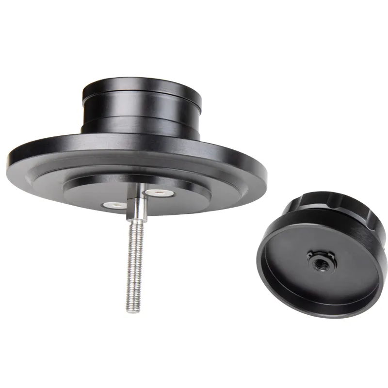 Made from precision machined aluminum, this adapter features three functions in one. It is primarily designed to quickly mount a Euro adapter (with M12 thread on top) on 100mm and 150mm bowls, as well as on a Mitchell base. The adapter comes with an M10 x 63mm long stainless steel screw and an adjustable knob.