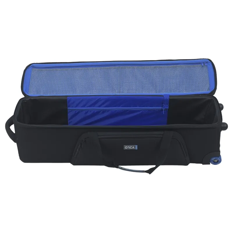 Orca OR-74 Tripod Rolling Bag for tripods features strong skate wheels, carrying handles, large external pocket for accessories and two external buckles to attach an optional shoulder carrying strap (sold separately).