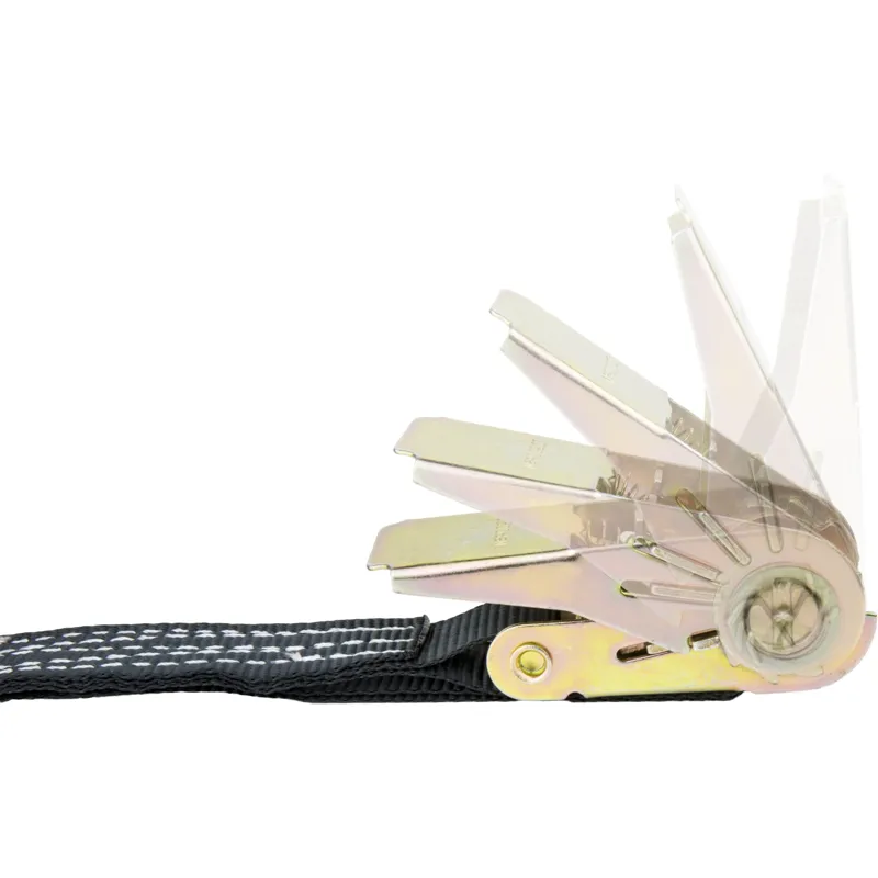 The black webbing ratchet strap comes with flat hooks and is 25mm in width and 5m in length. It is primarily designed to secure your car mount rig in position with the strap hooked onto the car.